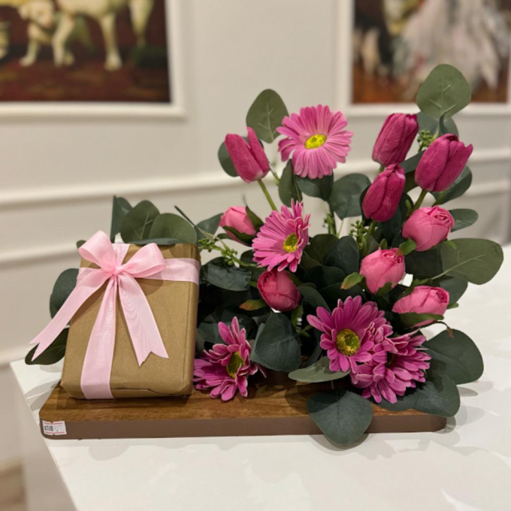تعبر هذه التوليفة من الزهور الوردية عن ذوق راقٍ وأناقة لا تضاهى، حيث تجمع بين جمال الورود والأقحوان الوردي مع لمسة من الورقيات الخضراء الداكنة، يُعد هذا التنسيق الفريد الذي يأتي مصحوبًا بعلبة هدايا مزينة بشريط ساتان وردي، الهدية المثالية للتعبير عن المشاعر الدافئة والتقدير في المناسبات الخاصة كالذكرى السنوية، عيد الأم، أو كبادرة امتنان وشكر.